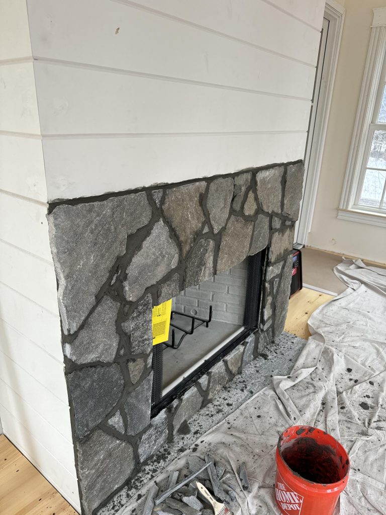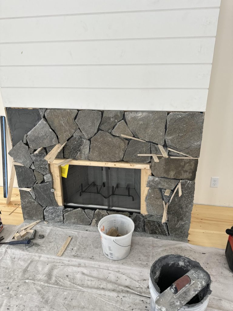 DRYSTACK FIELDSTONE VENEER: NEW ENGLAND FLAT MIX W/ CORINTHIAN LEDGE: